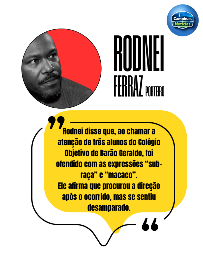 O porteiro Rodnei Ferraz, de 48 anos, afirma ter sido vítima de ofensas racistas enquanto trabalhava no Colégio Objetivo de Barão Geraldo, em Campinas (SP).